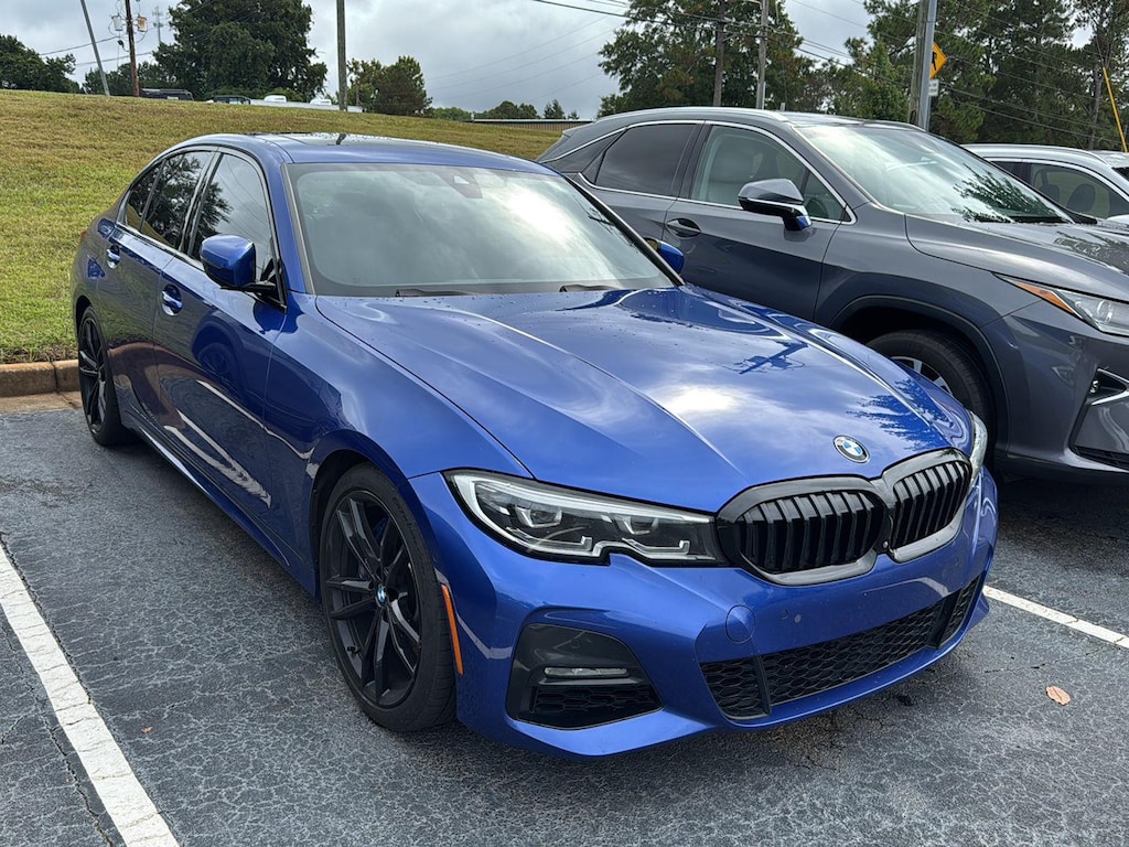 This 2019 BMW 330i is Portimao Blue Metallic with a Mocha Vernasca Leather Interior. It comes very well equipped with a Premium Package (Heated Steering Wheel, Heated Front Seats, Head-Up Display), Active Blind Spot Detection, Power Front Seats, Live Cockpit Pro (incl. Navi), Active Driving Assistant, M Sport Package (Variable Sport Steering, Comfort Access Keyless Entry, Lumbar Support, SiriusXM Radio, SensaTec Dashboard) M Sport Package (19" M Dual-Spoke Bi-Color Alloy Wheels, Aluminum Tetragon Trim, LED Foglights, Adaptive M Suspension, M Steering Wheel, Aerodynamic Kit, Shadowline Exterior Trim, Anthracite Headliner), Track Handling Package (M Sport Brakes with Blue Calipers, M Sport Differential), Parking Assistance Package (Active Park Distance Control, Parking Assistant Plus, Rear View Camera, Parking View with 3D View), Navigation System, WiFi Hotspot (by Subscr.), Wireless Charging, ConnectedDrive Services, Connected Package Pro, Active Protection, Active Guard, Apple CarPlay Compatibility, SPORT Automatic Transmission, Power Front Seats, Harman Kardon Surround Sound System, CD Player Prep, Auto-Dimming Rearview Mirror, Auto-Dimming Mirrors, Universal Garage Door Opener, Tire Pressure Monitor, Run Flat Tires, Dual Zone Climate Control, LED Headlights w/ Cornering, Storage Package, Alarm System, Park Distance Control, Power Tailgate, Remote Engine Start, and Daytime Driving Lights. Please ask for Internet Sales to receive this special internet offer!