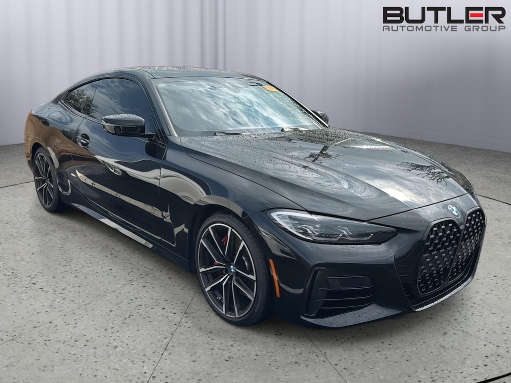 This 2021 BMW 440xi Cp is Black Sapphire Metallic with a Cognac Vernasca Leather Interior. It comes very well equipped with Shadowline Package (Mirror Caps in Black, Extended Shadowline Trim), Premium Package (Harman Kardon Surround Sound System, Heated Steering Wheel, Heated Front Seats, Ambient Lighting, Head-up Display, Live Cockpit Pro incl. Navi), 19" Alloy Wheels, Apple CarPlay Compatibility, Apple CarPlay/Android Auto Compatible, Remote Engine Start, Lumbar Support, Comfort Access Keyless Entry, SiriusXM Radio (by subscr.), Navigation System, Active Driving Assistant, Forward Collision Mitigation, ConnectedDrive Services, Connected Package Pro, Runflat Tires, Adjustable Seat Width, Storage Package, SensaTec Dashboard, Park Distance Control, Dual Zone Auto Climate Control, Auto-Dimming Rearview Mirror, Auto-Dimming Mirrors, Universal Garage Door Opener, Active Protection, Active Driving Assistant, Full LED Headlights w/ Laserlight, Tire Pressure Monitor, M Sport Brakes with Red Calipers, Increased Top Speed Limiter, Adaptive M Suspension, Alarm System, and Daytime Driving Lights. Please ask for Internet Sales to receive this special internet offer!